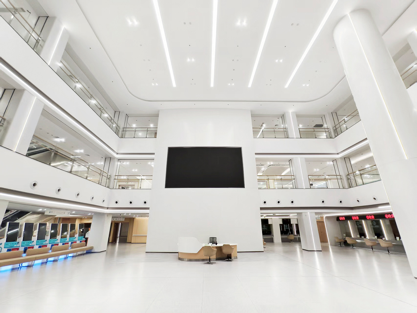 金螳螂以总承包模式承接了医院一期项目建设,施工面60848㎡,施工范围门急诊中 心、 体检中 心、 病房区 、 特殊诊疗区 域、 配套功能区等区域,涵盖精装修、 电气、 空调通风、给排水、 消防工程、 医气,净化、特殊医疗区域MRI屏蔽专项工程及室外配套各专业工程,金螳螂以多专业协同优势,为客户提供一站式交付服务,打造一个与城市共生、开放、高效、生态和体现人文关怀的医院。