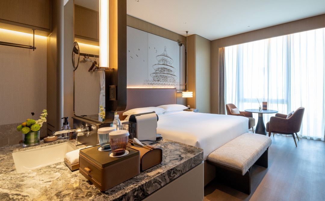 “一河似龙南北贯,二千里路天际宽”,黄金水道京杭大运河流淌了2500多年,是中华文明重要象征的世界文化遗产,沟通五江、连贯六府。而通州自古就是京杭大运河的重要节点,近年正随着北京城市副中心的不断建设,逐步转变为集文化、旅游、商务于一体的现代化城区。首旅建国饭店环球店选址紧邻运河文化带核心区,正是对这一历史转型的生动诠释,将漕运盛景延伸至现代文旅。